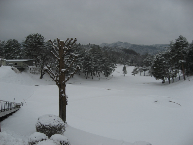 投稿日:2026.02.08/更新日:2026.02.08 お知らせ 2月8日の状況 2月8日の午後1時30分頃の状況です。 東コース9番。まだチラチラ小雪が降ってます。 パッティンググリーンの様子。現在の気温は0度!とっても寒いです。