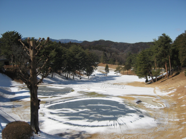 投稿日:2026.02.09/更新日:2026.02.09 お知らせ 2月9日の様子 2月9日(月)12時30分現在の様子です。 朝、7時の時点でフロント玄関前は氷点下でした。 東コース9番の様子です。 中コース1番の様子です。